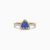 Stone Type: Trillion-cut blue gemstone with clear pavé accents